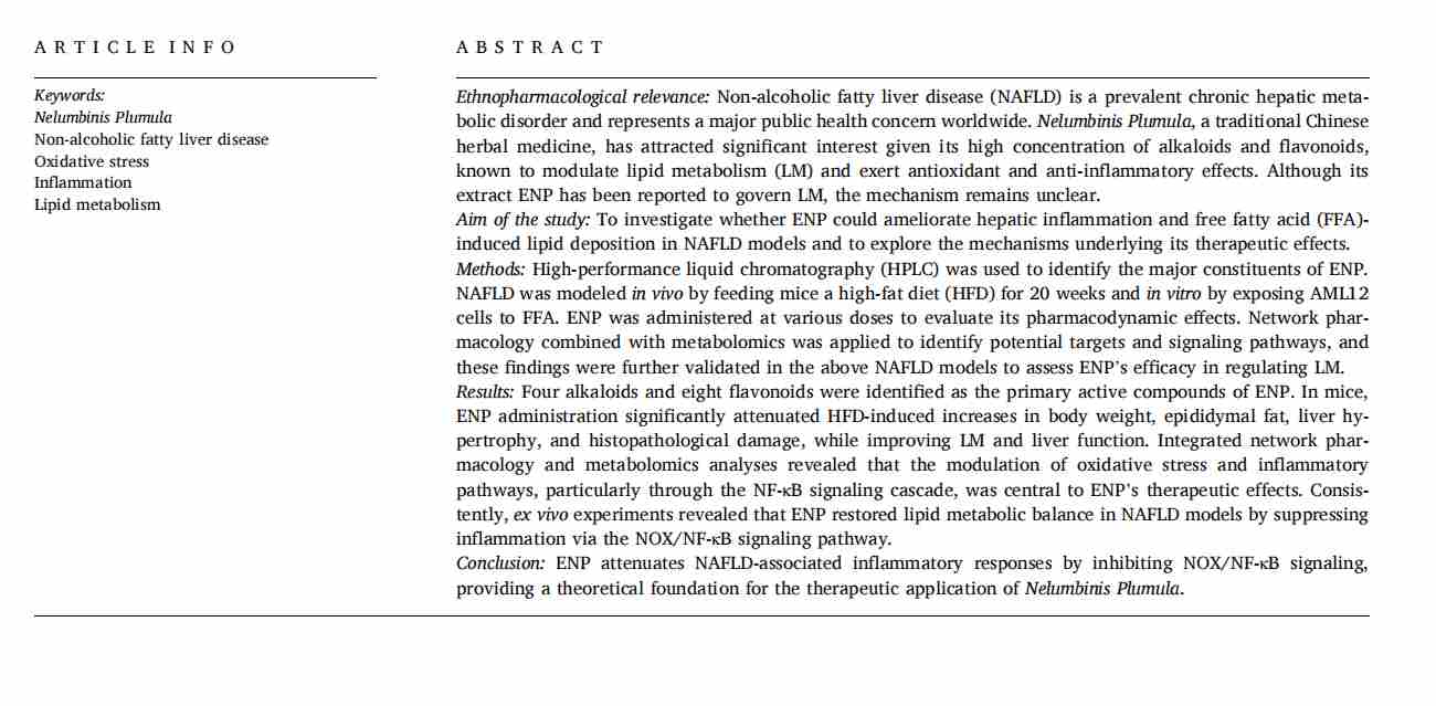 Nelumbinis Plumula attenuates high-fat-induced inflammation in non-alcoholic fatty liver through the NOX/NF-κB pathway