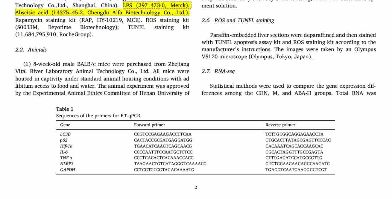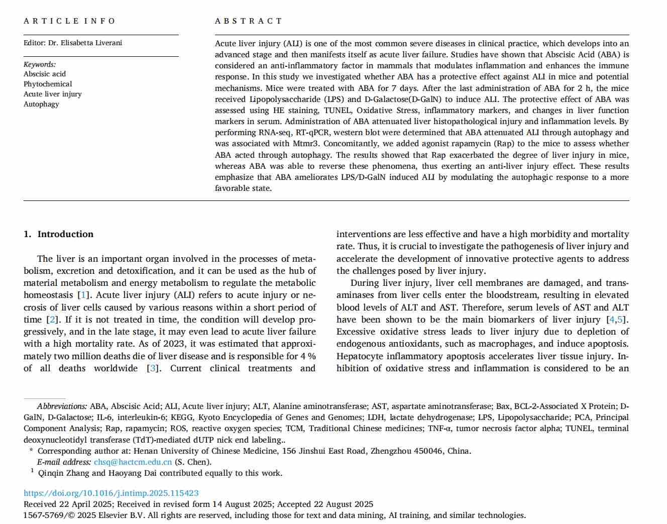 Abscisic acid attenuates acute liver injury in mice via the autophagy signaling pathway